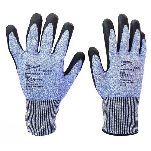 This grade F cut resistant glove is our highest rated in the category and represents the ultimate in cut resistance. The Mottled Light Blue liner is made from a composite 13-gauge yarn. The black coating is a double dipped porous breathable nitrile foam. Designed to offer excellent dry and wet grip, enhanced cut resistance as well as dexterity and breathable protection against abrasion, protection against abrasion, and sensitive glove.