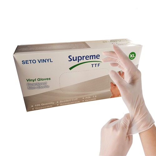This is an ambidextrous, powdered five-finger Vinyl glove with textured fingertips and a beaded / rolled edge cuff in Medical Grade AQL 1.5 Clear. Latex and nitrile gloves are expensive, therefore vinyl gloves are a good option. Formulated using high- quality polyvinyl chloride and maize starch that has been certified as GMO-free. Not suited for regions where powder particles are prone to pollute.
